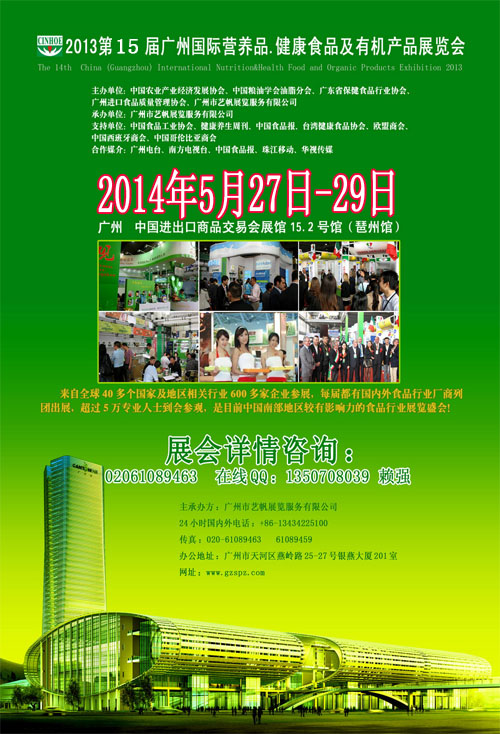 - 不久前[展會(huì)] 2014第15屆中國廣州國際營養(yǎng)品.健康食品及有機(jī)產(chǎn)品展覽會(huì)