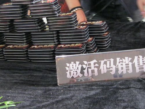現(xiàn)場,網(wǎng)游愛好者,各家媒體,參展商云集一堂。為了吸引,更多游戲愛好者的眼球,各家參展商更是花樣百出。在一家展商周圍,聚集了眾多愛好者,出于湊熱鬧的心理,我也上前看了看,原來是現(xiàn)場銷售激活碼。這不看不知道在一回頭原來隊已經(jīng)拍的好長了。