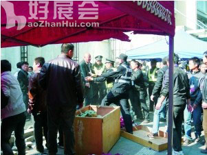 10分鐘后,兩公司工作人員發(fā)生口角,繼而爭(zhēng)吵,并發(fā)生肢體沖突,有人舉起雨篷砸向?qū)Ψ健>今R上上前解圍,雙方陷入僵持狀態(tài)。沖突過(guò)程中,金明創(chuàng)展公司一名工作人員被對(duì)方用辣椒水噴霧刺傷了眼睛,造成面部浮腫,還有工作人員的衣服在拉扯中撕破。