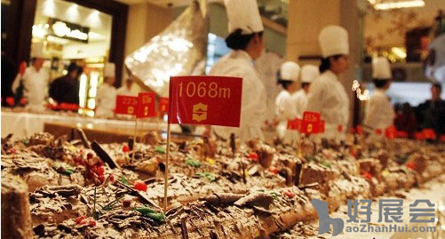 圣誕節(jié)即將來(lái)臨,各地的準(zhǔn)備工作也火熱準(zhǔn)備。近日,浦東香格里拉大酒店做出全長(zhǎng)為1068米的樹(shù)根蛋糕,創(chuàng)造了新的吉尼斯紀(jì)錄。樹(shù)根蛋糕在浦東香格里拉大酒店一樓大堂內(nèi)從紫金樓到浦江樓再回到紫金樓一共繞了5圈,共用去1045公斤全麥面粉、904只有機(jī)雞蛋、633公斤新鮮奶油、401公斤巧克力、379公斤糖粉、203公斤蔗糖、106公斤杏仁膏、37公斤櫻桃、34公斤檸檬和同樣分量的大溪地香草。