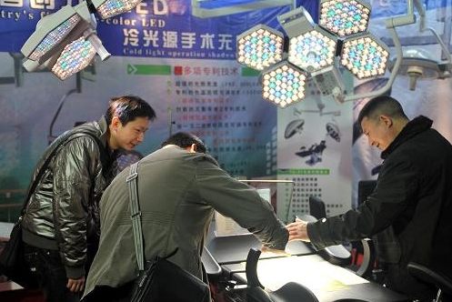 3月13日,第13屆中國醫(yī)療器械設(shè)備展上,顧客在查看無影燈的顯示效果。當(dāng)日,第13屆中國醫(yī)療器械設(shè)備展在貴陽開展。據(jù)了解,本屆展會吸引了來自國內(nèi)外300余家醫(yī)療器械生產(chǎn)企業(yè)及代理商參展,展出內(nèi)容包括新型醫(yī)療器械、診斷治療設(shè)備、醫(yī)療輔助設(shè)備等。(來源:新華網(wǎng))