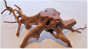 根據(jù)我們的實踐體會,一個完美的花架,應該體現(xiàn)“四個字”,即“大、小、多、少”。大:即面子要大,易于擺放飾品;“小”即根雕一般都有節(jié)疤,有節(jié)疤是好事,顯得蒼勁,但節(jié)疤要小,過大影響整體形象;“多”即“腳”要多,既有平穩(wěn)感,又有藝術美感;“少”指“手”要少,上面“手”太多,既影響美感,又影響飾品擺放。
