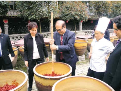 川菜博物館典藏館展出了從戰(zhàn)國至現(xiàn)代的3000多件川菜飲食器皿,這些藏品在使用功能上可分為煮食器、盛食器、酒器、用餐器、茶具,從材質(zhì)上可分為青銅、牙骨、陶、瓷、鐵器、木、竹等?;友菔攫^現(xiàn)場演示川菜的刀功、火候及成菜過程,是川菜非物質(zhì)文化核心內(nèi)容。游客可以參與互動,通過味覺感受川菜的香和味,還可以了解川菜的零餐、雅間、筵席等就餐形式。(來源:人民網(wǎng)-節(jié)慶會展頻道)