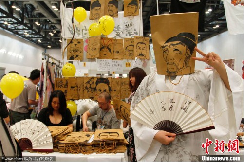 2012年04月15日,北京,第七屆囧囧有神同人動(dòng)漫展在國(guó)家會(huì)議中心舉行。眾多動(dòng)漫愛(ài)好者齊聚國(guó)家會(huì)議中心,參與COSPLAY、原創(chuàng)動(dòng)漫發(fā)售、“偽娘”大賽等展會(huì)活動(dòng)。“杜甫很忙”系列漫畫(huà)日前在網(wǎng)絡(luò)上受到了廣泛的關(guān)注,動(dòng)漫愛(ài)好者也“與時(shí)俱進(jìn)”地推出了“杜甫很忙”主題紙袋頭套,吸引了許多年輕動(dòng)漫愛(ài)好者的喜愛(ài)。(來(lái)源:中新網(wǎng))