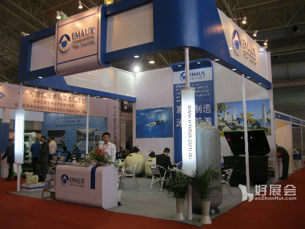 4月17日,EMAUX在展覽會上的展臺。當日,2012第七屆北京國際泳池沐浴SPA展覽會在中國國際展覽中心啟幕。展會由由中國商業(yè)聯(lián)合會沐浴專業(yè)委員會和北京極地通達展覽有限公司共同主辦,是商務部內(nèi)貿(mào)領(lǐng)域重點扶持展會。