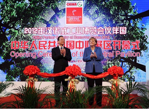 2012漢諾威工業(yè)博覽會(huì) 溫家寶與默克爾出席中國(guó)中心展區(qū)開幕剪彩儀式