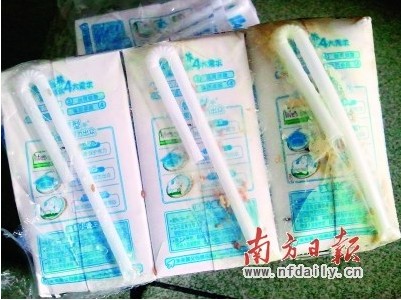 4月19日晚,家住東莞長安錦廈新村的謝先生經(jīng)不住兒子的央求,在附近的百佳超市買了一箱生產(chǎn)日期標(biāo)明為“20120302”的蒙牛兒童牛奶回家。可數(shù)日后他才發(fā)現(xiàn),箱內(nèi)部分未拆包裝的牛奶外殼上長滿蟲子,這讓全家人對已喝了幾盒這箱牛奶的兒子的健康擔(dān)心不已。