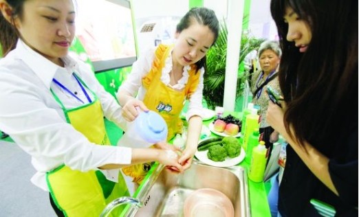 5月6日,在中國國際清潔產(chǎn)業(yè)博覽會上,工作人員演示清潔產(chǎn)品的對比實驗。當日,為期3天的2012中國國際清潔產(chǎn)業(yè)博覽會在北京國家會議中心開幕。本屆博覽會的主題是“新清潔點亮新生活”,吸引了國內(nèi)外上百家清潔企業(yè)攜最新清潔技術(shù)和理念參加。(來源:新華網(wǎng))