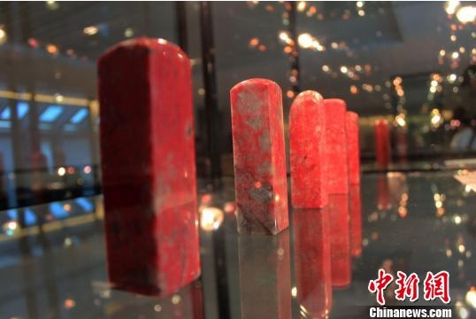5月17日,來自陜西旬陽的百余件雞血石作品在西安展出。據(jù)考證,雞血石的開采始于明代,而盛名于清代,且多用于印章及工藝雕刻品的制作。陜西旬陽縣發(fā)現(xiàn)的雞血石礦是現(xiàn)今中國最大的雞血石產(chǎn)地,被譽為中國的“汞都”。目前,中國大陸對雞血石的收藏投資熱情也逐年升溫。(來源:中新網(wǎng))