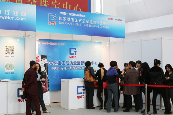 珠寶玉石質(zhì)量監(jiān)督檢驗中心在現(xiàn)場免費鑒定、咨詢服務(wù)。