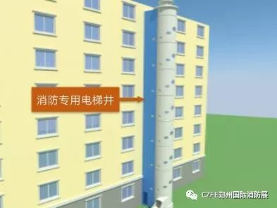 (6)消防專用電梯井的組合設(shè)置可使消防人員從樓外迅速越過火區(qū)到達(dá)上層實施救援,同時這一設(shè)置也是當(dāng)前國際專家學(xué)者論證的在樓外獨立安裝消防專用電梯的熱議課題。