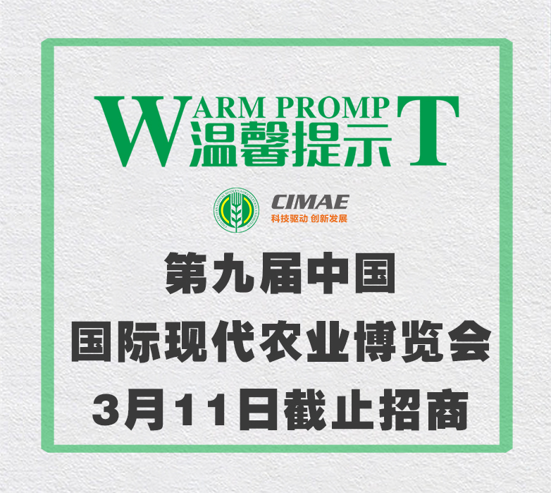 溫馨提示|中國國際農(nóng)業(yè)博覽會將于本周截止招展