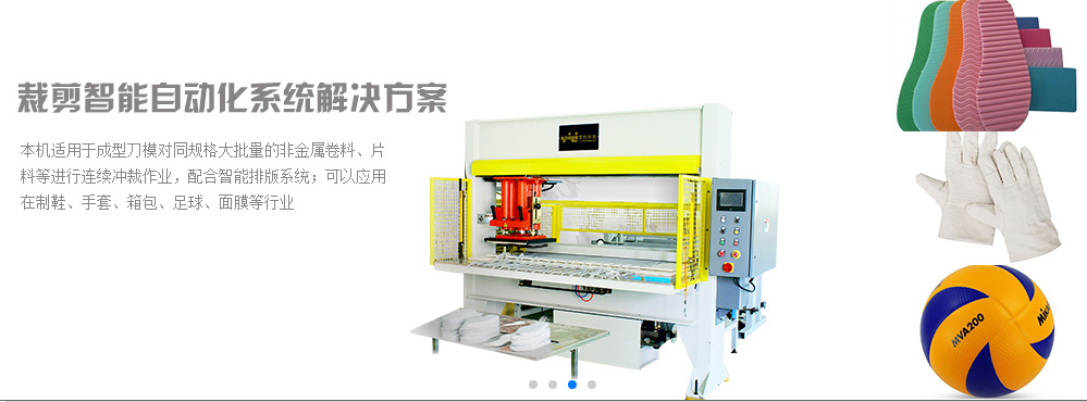 本類機器適用于:不同規(guī)格刀模對同規(guī)格、大批量、各種非金屬卷料?片料材料,進行連續(xù)沖裁作業(yè)??蛇\用于體育用品、磨料磨具、醫(yī)藥器材、服裝鞋帽、文化用品等行業(yè)。采用伺服電機控制沖頭的橫行移動、旋轉運動,同時自動換刀機構,大大提高設備利用率及多品種產(chǎn)品的需要。機器采用紅外線精準對位,充分合理的利用材料,減少不必要的損耗,適用于一層或多層材料的裁剪。材料對位后機器按下操作按鈕氣缸夾緊然后伺服馬達帶動高精度絲桿按用戶設定的尺寸要求送料,機器自動完成對材料的沖裁。沖頭位移的距離和進料的長度可在人機界面精確設定,解決了送多層材料時的材料分層,長度不準問題。具有手動、半自動、自動多種工作模式,工人只需要撿拾成品材料,減輕了勞動強度,提高了工作效率。具有錯位、錯位減刀、刀模轉位等沖裁模式,可套取材料,節(jié)約原材料10%-15%。由于本機采用微電腦控制,自動化程度高,整機只需一名工人,生產(chǎn)效率可提高6-8倍,節(jié)約電能近1/3。特有的設定結構,配合裁斷刀高度設定,使沖程調(diào)整方便、準確。電腦自動排版,實現(xiàn)多種刀模的自動沖裁. 工控控制,具有連續(xù)長時間工作能力,存儲量大,較強的抗干擾能力的特點. 特殊規(guī)格可定制。