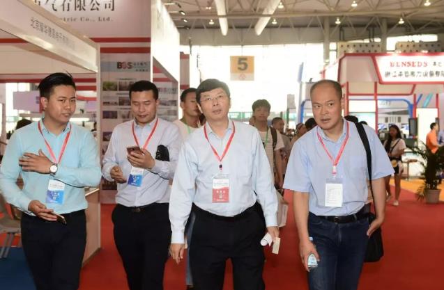 5月4日上午,四川省電力行業(yè)協(xié)會常務(wù)副理事長石俊杰(前排右二)在四川省電力行業(yè)協(xié)會常務(wù)副秘書長文曹(前排右一)、成都振威世展展覽有限公司總經(jīng)理張學(xué)輝(前排右三)等陪同下,視察指導(dǎo)展會