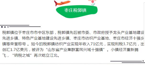 截至目前,全鎮(zhèn)紡織企業(yè)發(fā)展到130余家,另有家庭式小紡織企業(yè)200余家,可年產(chǎn)各種紗線9000噸、平白布3600萬米、針織布7.5萬噸、漂染布4萬噸、加工針織內(nèi)衣和針織服裝19000萬件,花色品種達300余個,產(chǎn)品絕大多數(shù)通過青島、上海等外貿(mào)公司出口日本、美洲、歐洲、西亞及東南亞等38個國家和地區(qū),年可實現(xiàn)銷售收入71億元,實現(xiàn)利稅3.7億元,出口創(chuàng)匯1.7億美元。