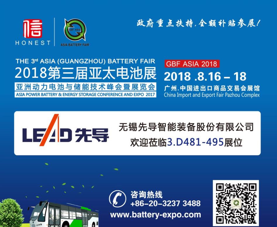 無錫先導智能裝備股份有限公司 將隆重出席8月16-18日在廣州琶洲.廣交會展館A區(qū)舉辦的GBF.ASIA 2018第三屆亞太電池展。