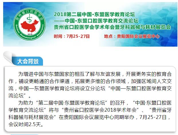 【學(xué)術(shù)課程】2018中國·東盟口腔醫(yī)學(xué)教育交流論壇暨貴州口腔展
