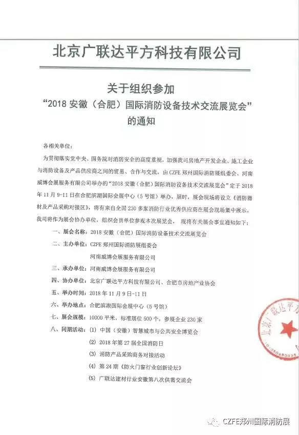 據(jù)了解,11月9-11日在濱湖國際會展中心(5號館)舉辦的2018安徽合肥國際消防展,系本地區(qū)近十年來首次舉辦的大規(guī)模、專業(yè)化消防展會,展會規(guī)模達(dá)到10000平米;預(yù)計將有230多家優(yōu)秀展商亮相。
