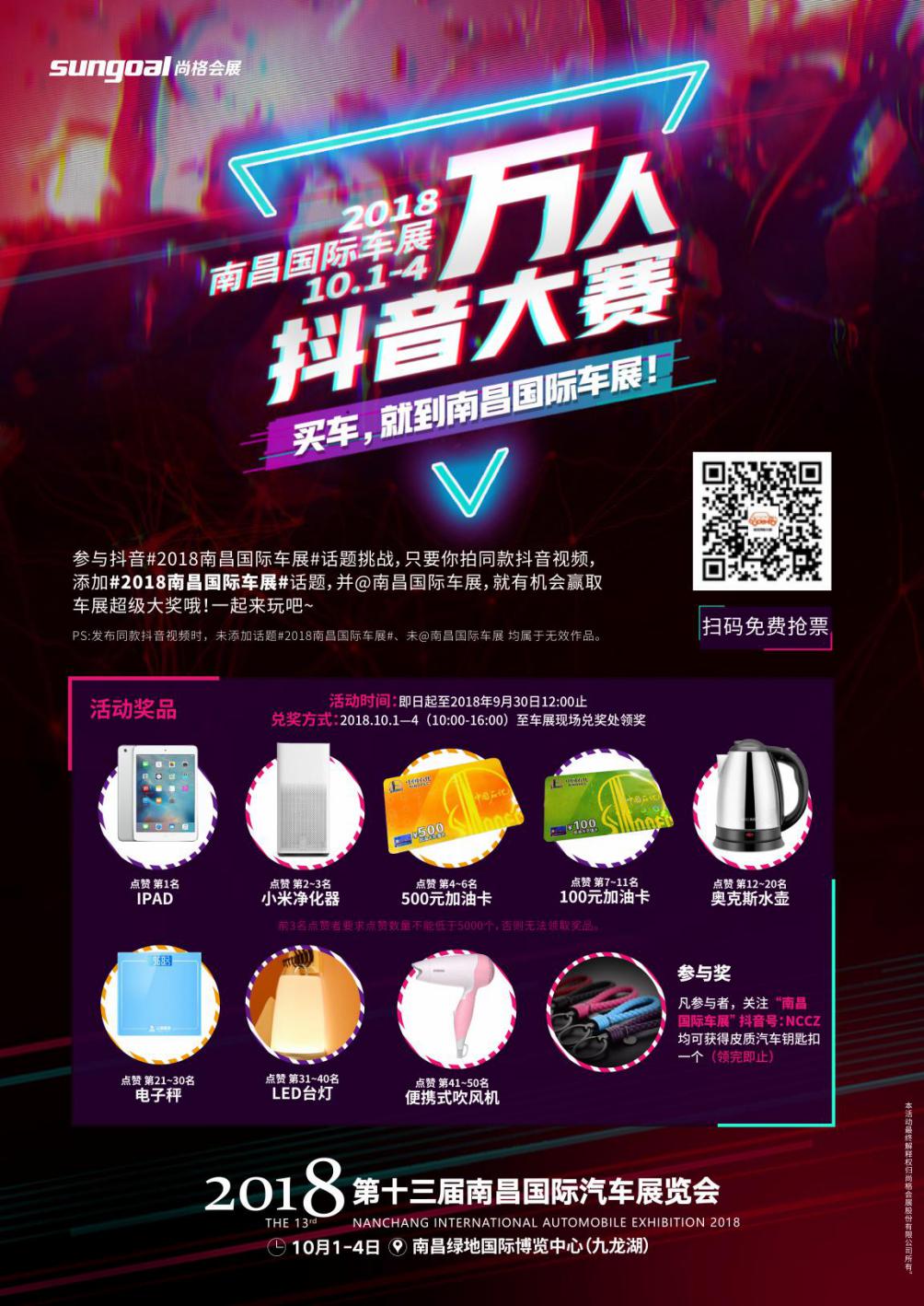 PS.發(fā)布同款抖音視頻時,未添加話題#2018南昌國際車展#、未@南昌國際車展 均屬于無效作品。