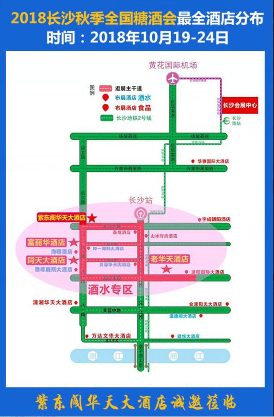 【紫東閣華天大酒店·酒水布展專區(qū)】2018長(zhǎng)沙秋糖布展點(diǎn)集中,自成一體,布展中心區(qū)主要為長(zhǎng)沙市火車站、五一路、萬(wàn)家麗路三大區(qū)域。特別是酒類展區(qū),沿襲了糖酒會(huì)歷來(lái)以“火車站+市中心”的傳統(tǒng)布展模式,在長(zhǎng)沙市區(qū)主干線火車站上形成了以紫東閣華天大酒店為中心的精品酒水展覽專區(qū)。身處德天都厚地理位置的紫東閣華天大酒店,不僅在秋糖酒店展區(qū)集中圈,更是五一路起點(diǎn)長(zhǎng)沙火車站出站第①座酒水布展酒店,毗鄰萬(wàn)家麗。黃金地段、絕佳展示空間、物超所值的性價(jià)比、搶到的都是商機(jī)!