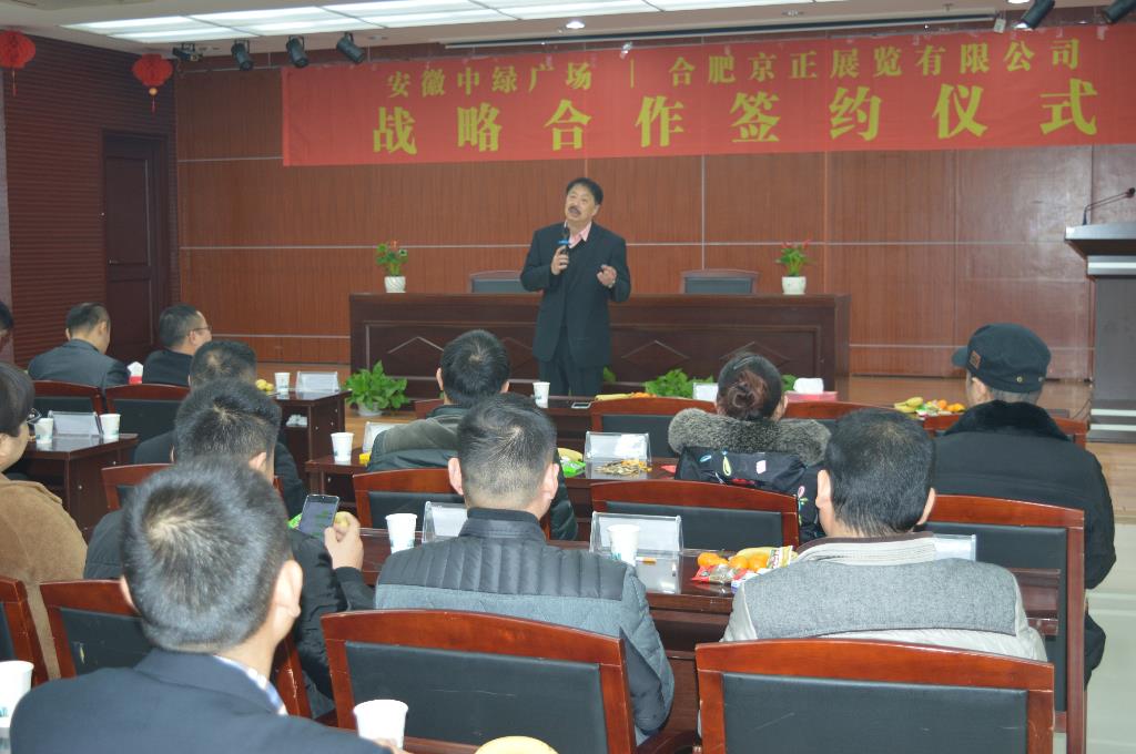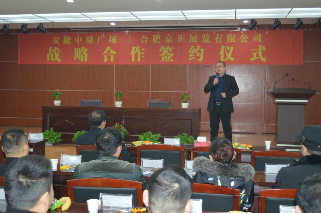 安徽中綠廣場管理有限公司總經(jīng)理孫序躍孫總開場致辭,向到場所有嘉賓們詳細(xì)說明此次與合肥京正展覽有限公司的戰(zhàn)略合作事項。孫總說,中綠廣場在安徽