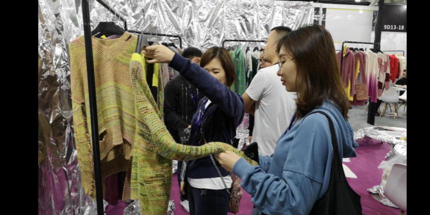 中國女裝領(lǐng)軍企業(yè)歌力思時尚集團(tuán)供應(yīng)鏈負(fù)責(zé)人到訪針織力量展位,并驚喜地發(fā)現(xiàn)數(shù)家具有合作潛力的毛衫企業(yè)?。ǜ较聢D)