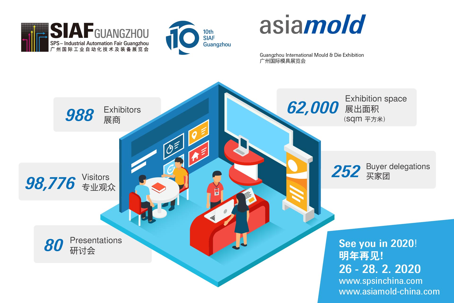 – 展商:988 (2018年:896) – 增長(zhǎng)10.3%