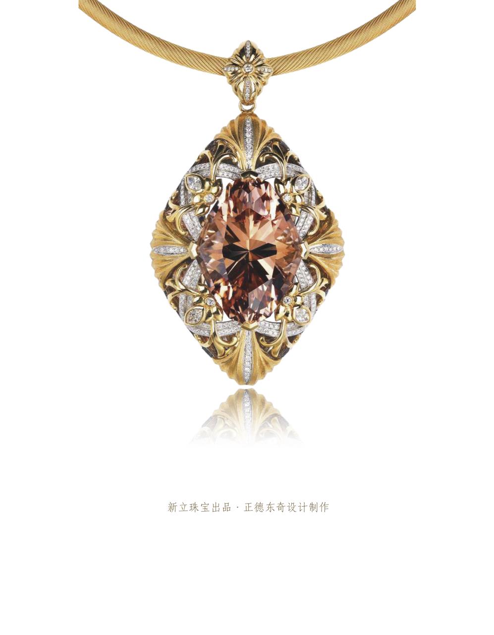 18K金-鉆石-摩根石,整件首飾以一顆高品質(zhì),特殊切割的摩根石為中心、承襲華貴復(fù)古的設(shè)計(jì)風(fēng)格,配以繁復(fù)的金工鑲嵌。
