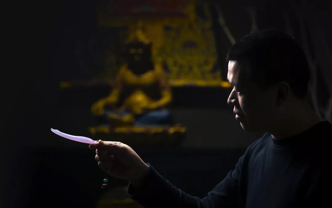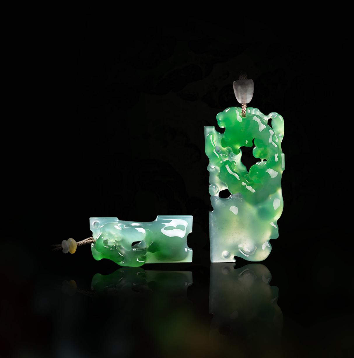 化境系列,意在還原翡翠中自然天成的美感。結(jié)合其質(zhì),形,色,意,以流暢的線條,呈現(xiàn)玉石雅致清逸,意境空明的天然之美。該系列作品造型抽象,在純凈靈透中展現(xiàn)空靈寂靜之美。在清心自由的狀態(tài)中,加以想象,感知,它或是水,是魚,是舞者,是一切生靈……成萬物之法變,應(yīng)無所住而通其心,遂漸入佳境。