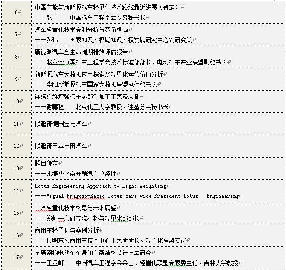 其中,正在與工信部、科技部、廈門金龍、城都大運、中通客車、北汽動力總成、賽麟汽車、漢騰汽車、福特汽車、本田汽車,以及一汽、東風(fēng)、長安、江淮、上汽等底盤部門匯報和商談參會事項,同時,擬邀請德爾福、西門、麥格納、大陸、延鋒、敏實、奇昊、偉世通、濰柴等全球汽車零部件百強中20多家零部件企業(yè),預(yù)計本次參加汽車輕量化大會的中大型汽車企業(yè)有60多家,全球汽車零部件百強中有50多家零部件企業(yè)。