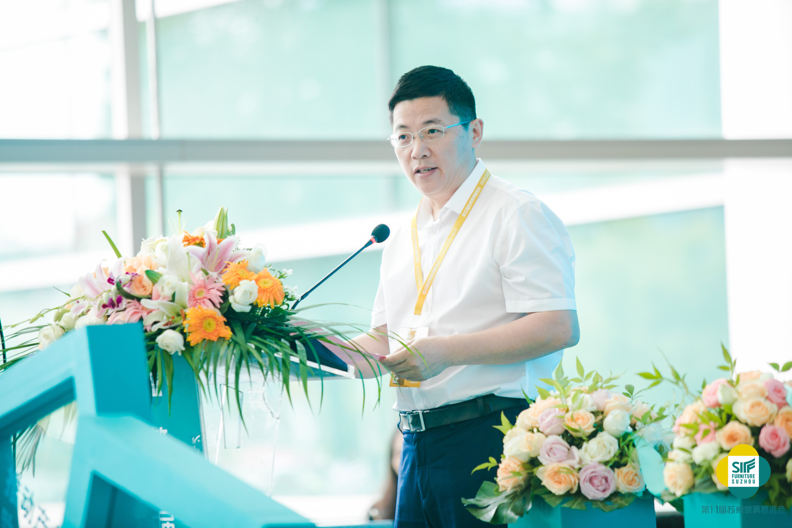 中國家具協(xié)會副理事長、江蘇家具品牌聯(lián)盟主席、斯可馨家具股份有限公司董事長胡衛(wèi)東先生上臺致辭。胡衛(wèi)東先生表示,蘇州家具展的穩(wěn)定發(fā)展,推動了江蘇家具品牌聯(lián)盟、華東家具在國內(nèi)的行業(yè)影響力,作為參展品牌,要想長久立足于長三角這個行業(yè)聚集地,除了自身的發(fā)展機遇,更要借助像蘇州家具展這樣的行業(yè)平臺來給企業(yè)帶來更多資源、更多助力。目前在互聯(lián)網(wǎng)大趨勢下,行業(yè)轉(zhuǎn)型升級大背景下,家具企業(yè)必須聯(lián)合起來,以蘇州家具展為契機,集中展現(xiàn)江蘇家具品牌的整體形象,集中提升江蘇家具品牌的整體市場競爭力,在激烈的市場角逐中贏得更廣闊的的發(fā)展空間!
