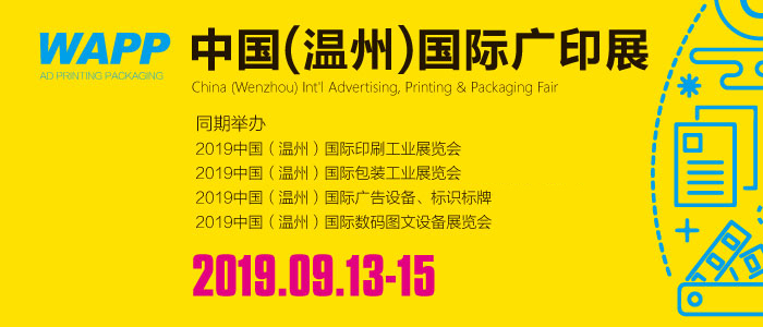 2019中國(溫州)國際廣印展將于9月13-15日在溫州國際會展中心隆重舉行。本屆展會由中國印刷及設(shè)備器材工業(yè)協(xié)會印刷機械分會、溫州市印刷行業(yè)協(xié)會、溫州市包裝聯(lián)合會、浙江省標(biāo)識行業(yè)協(xié)會、上海德納會展有限公司主辦,溫州德納展覽有限公司承辦。同期舉辦:2019中國(溫州)印刷工業(yè)展覽會、2019中國(溫州)包裝工業(yè)展覽會、2019中國(溫州)廣告設(shè)備、標(biāo)識標(biāo)牌展覽會、2019中國(溫州)數(shù)碼圖文設(shè)備展覽會等四大主題展會。