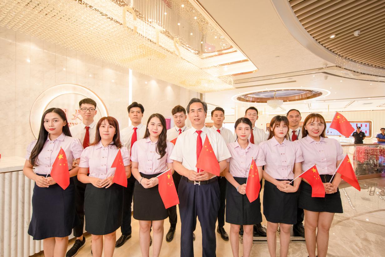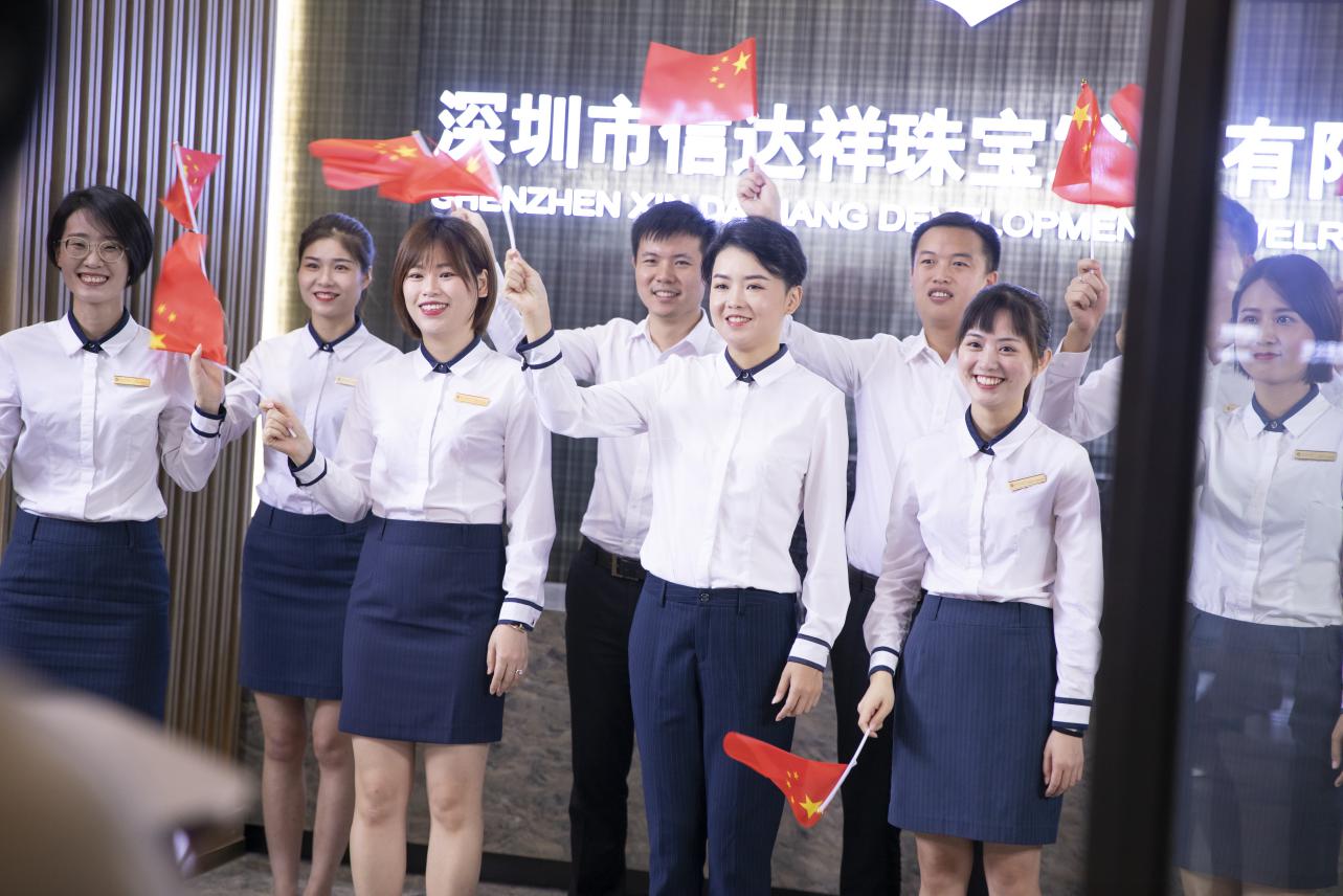 “我和我的祖國(guó),一刻也不能分割……”這是烙在心底的旋律,是對(duì)祖國(guó)永遠(yuǎn)的贊歌?;厥?0年的崢嶸歲月和光輝歷程,中華民族從“一窮二白”到發(fā)展成為世界上最具活力的經(jīng)濟(jì)體之一,實(shí)現(xiàn)了富強(qiáng)起來(lái)的歷史性飛躍。在五星紅旗的飄揚(yáng)下,在嘹亮的歌聲中,展示了珠寶人和祖國(guó)一起前行的決心和熱忱。