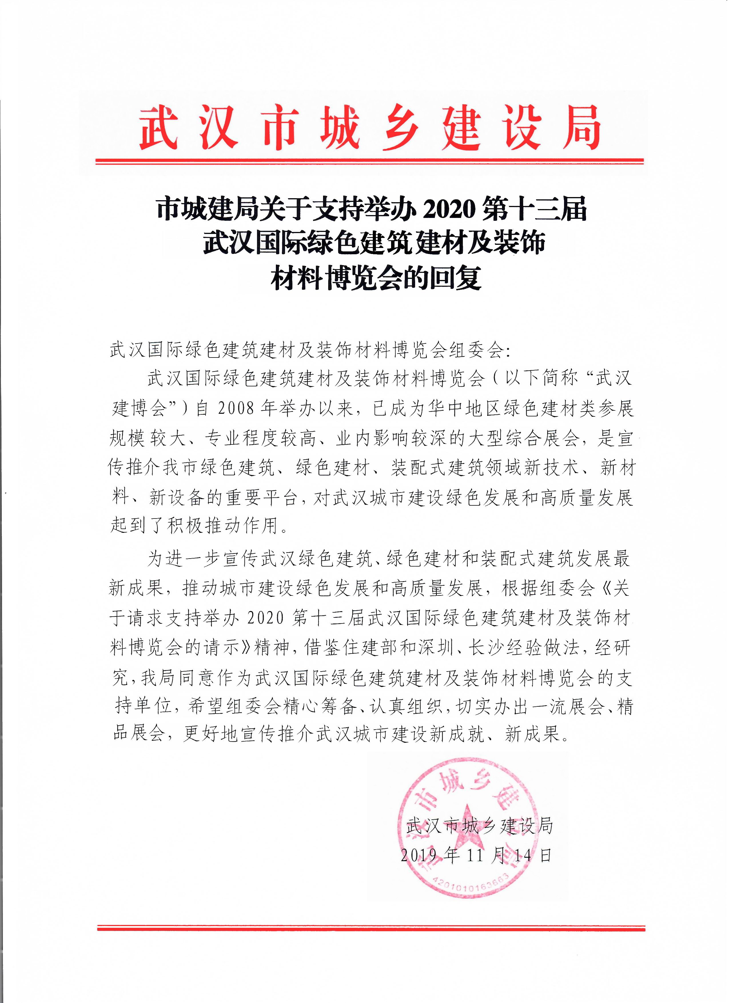 2020武漢建博會|市城建局支持做大做強(qiáng)