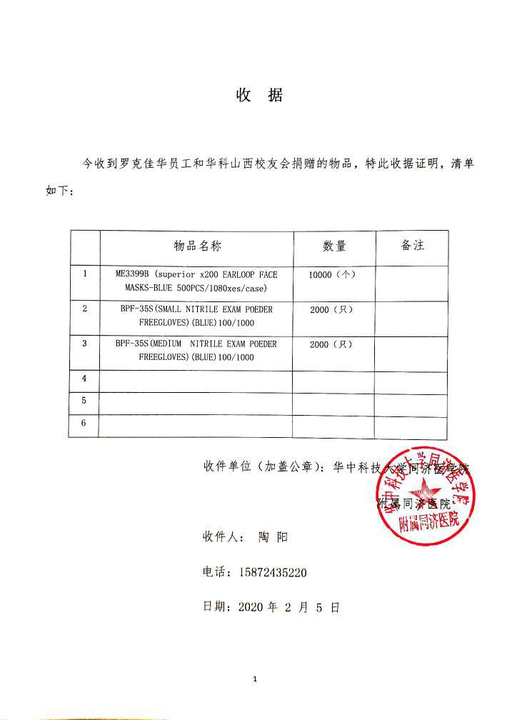 “第二批物資:護目鏡品罩,170箱,1.7萬只;醫(yī)用口罩,80箱,4萬只,醫(yī)用手套120箱,12萬雙,已經(jīng)發(fā)出,請注意查收。”2月5日,羅克佳華組織捐贈的第一批醫(yī)療醫(yī)用口罩1萬只、醫(yī)用手套4000雙已經(jīng)由武漢同濟醫(yī)院接收并應(yīng)用。第二批物資正在運往武漢的路上,為抗戰(zhàn)在一線的醫(yī)護人員送去緊缺的“武器”。
