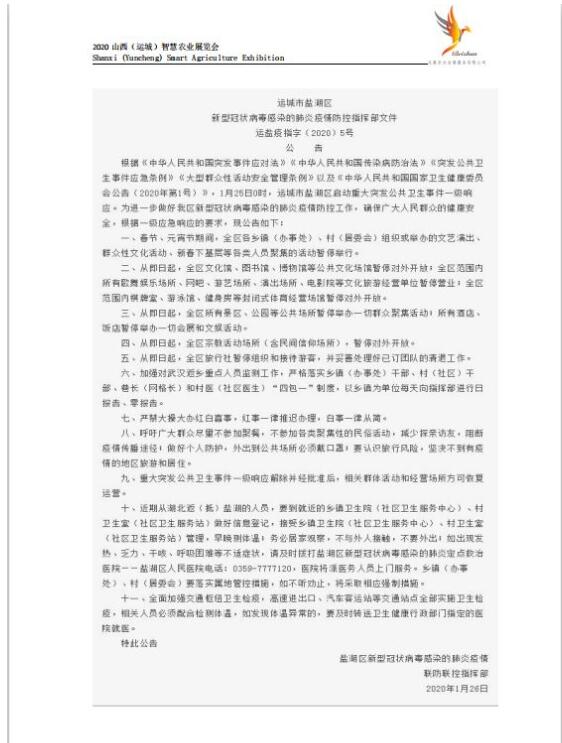 關(guān)于2020山西(運(yùn)城)智慧農(nóng)業(yè)展覽會延期的通知