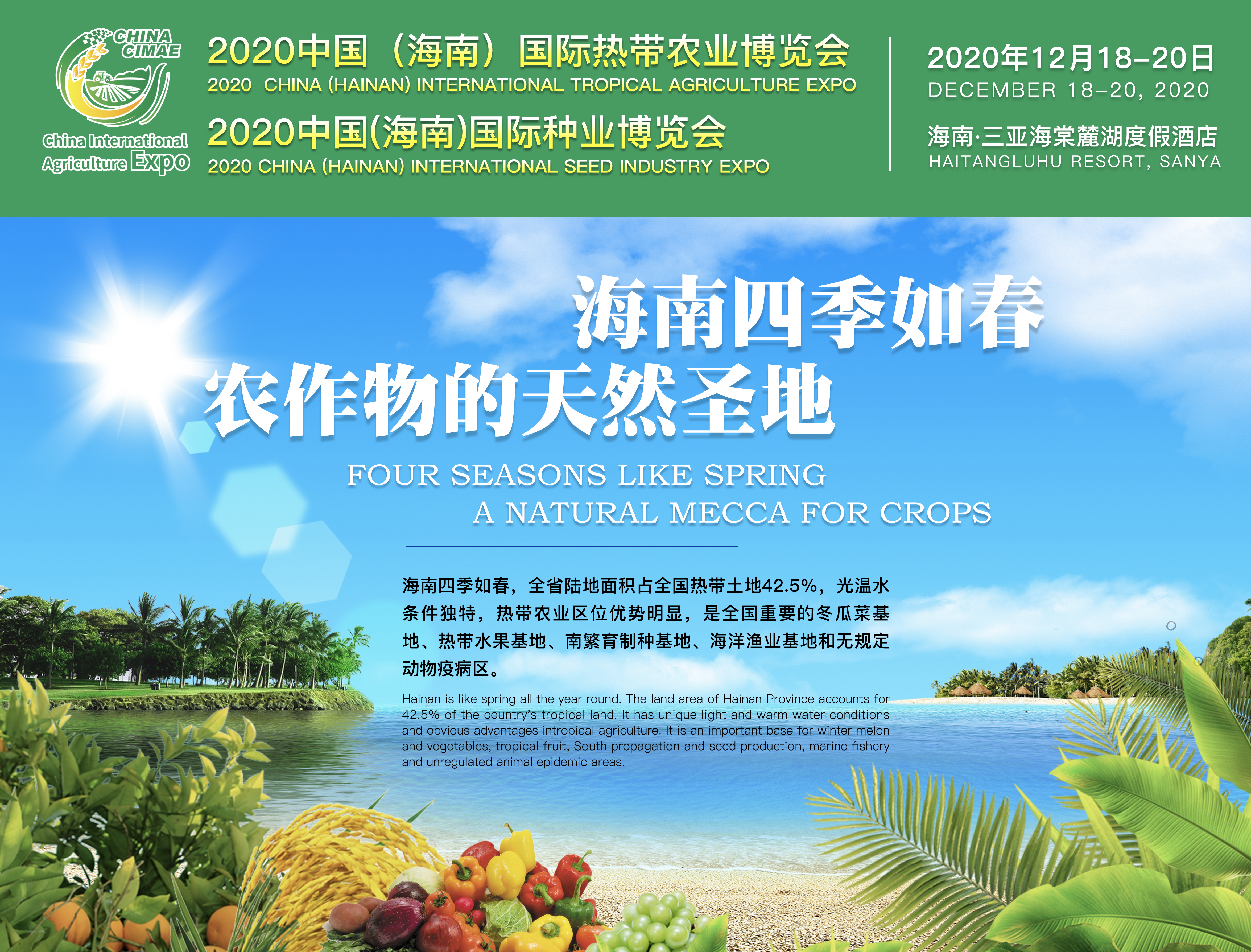 內(nèi)容摘要:農(nóng)業(yè),是關(guān)系國計(jì)民生的產(chǎn)業(yè),政府工作報告中明確提出:促進(jìn)農(nóng)林牧漁業(yè)和種業(yè)創(chuàng)新發(fā)展,加快建設(shè)現(xiàn)代農(nóng)業(yè)產(chǎn)業(yè)園和特色農(nóng)產(chǎn)品優(yōu)勢區(qū),穩(wěn)定和優(yōu)化糧食生產(chǎn)。2020年伊始,全國各行各業(yè)遭遇新冠肺炎疫情影響,對我國農(nóng)業(yè)發(fā)展以及目標(biāo)實(shí)現(xiàn)造成了重大困難。如何將疫情對“三農(nóng)”影響降到最低,保證糧食等重要農(nóng)產(chǎn)品穩(wěn)產(chǎn)保供,成為上至政府、下至市場、各相關(guān)企業(yè)面臨的一道重要課題。國家商務(wù)部為支持會展業(yè)快速發(fā)展,出臺文件并提出13項(xiàng)具體要求。海南國際熱帶農(nóng)業(yè)博覽會作為海南省唯一的農(nóng)業(yè)高新技術(shù)、生產(chǎn)資料交流貿(mào)易平臺,為積極應(yīng)對肺炎疫情、助力農(nóng)業(yè)發(fā)展,特推出“商旅+食宿一條龍會展新模式”。
