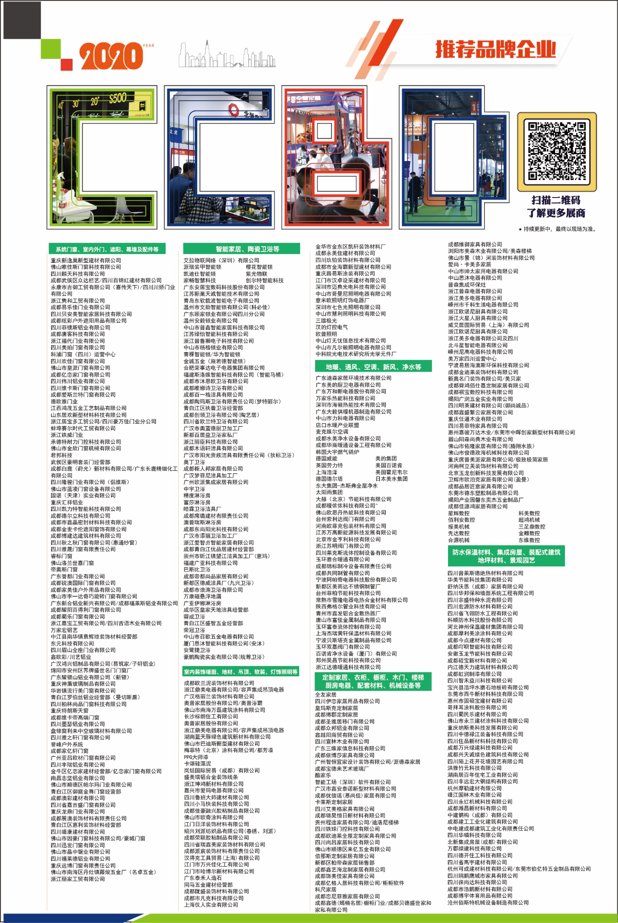 作為國內(nèi)大家居建裝行業(yè)領(lǐng)先展會,2020成都建博會秉承全產(chǎn)業(yè)鏈展出的聚合優(yōu)勢,不斷完善“大家居、智能舒適家居、節(jié)能建筑新材料“三大主題展,展館劃分細致,展品種類全面,經(jīng)過前期不斷努力,招展已經(jīng)進入收尾工作,截止目前參展企業(yè)超1400家。展館分布為:1、2、3號門窗館,3-4連接館陶瓷展區(qū),4號智能家居/衛(wèi)浴館,5號墻面/吊頂/地材/軟裝館,5-6連接館燈飾照明展區(qū),9號活動論壇館,10號暖通凈水館,10-11連接館廚電展區(qū),11、14號定制家居館,14-15連接館定制設(shè)備展區(qū),15號建筑新材料館,16號裝配式建筑/園林館,展會由“建”到“裝”由配套材料到成品涵蓋全產(chǎn)業(yè)鏈產(chǎn)品展示,為大家居建裝行業(yè)品牌廠商、貿(mào)易單位、采購單位搭建提供更全面高效的交流商貿(mào)平臺。