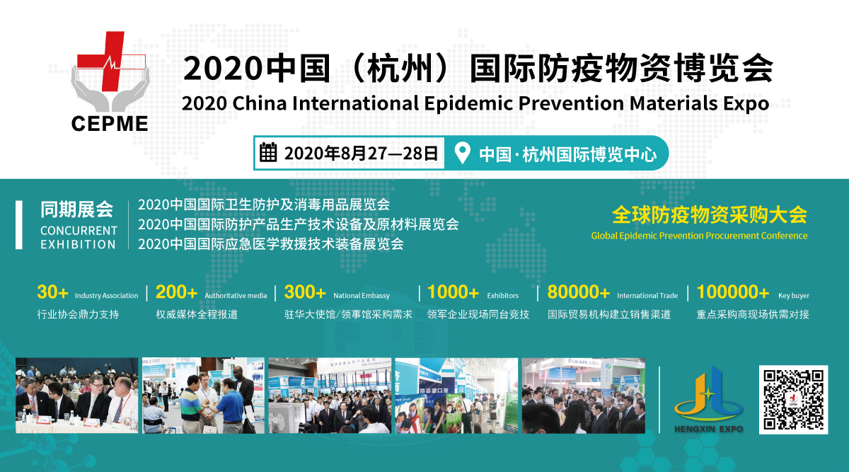 為促進防疫物資國際流通與全球供應,助力全球疫情防控及物資儲備,實現(xiàn)供需雙方的精準無縫對接,由恒信展覽集團聯(lián)合海內(nèi)外駐華商協(xié)會、駐華大使館/領事館、衛(wèi)生防疫行業(yè)聯(lián)盟、國際貿(mào)易商會、醫(yī)療用品協(xié)會、進出口協(xié)會聯(lián)手打造的“全球防疫物資采購大會”---CEPME杭州國際防疫物資博覽會(簡稱:CEPME)將于8月27日-28日在杭州國際博覽中心隆重召開。預計展會將吸引500+品牌參展商、展出面積將達30,000平米、約30,000名全球采購商現(xiàn)場對接。