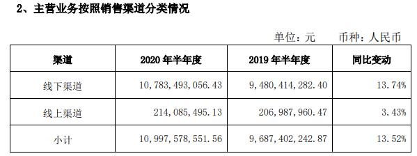 海天味業(yè)線上業(yè)務(wù)加快發(fā)展,從而使電商平臺(tái)和傳統(tǒng)渠道有效的結(jié)合,鞏固了公司在渠道和終端上的競(jìng)爭(zhēng)優(yōu)勢(shì)。2020上半年,分銷(xiāo)售渠道來(lái)看,線下渠道營(yíng)收破百億,約為107.83億元,同比增長(zhǎng)13.74%;線上渠道營(yíng)收2.14億元,同比增長(zhǎng)3.43%。