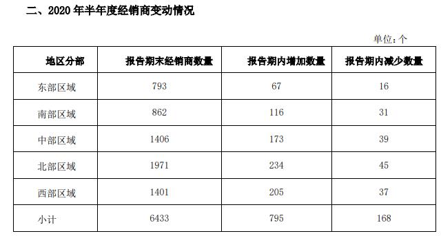 2020上半年,海天味業(yè)繼續(xù)壓實(shí)渠道管理的多項(xiàng)舉措,穩(wěn)定經(jīng)銷(xiāo)商的經(jīng)營(yíng),完善經(jīng)銷(xiāo)商的產(chǎn)品結(jié)構(gòu),使整個(gè)銷(xiāo)售渠道的發(fā)展更加健康,渠道的健康發(fā)展也為未來(lái)的市場(chǎng)拓展和品類(lèi)的發(fā)展奠定了堅(jiān)實(shí)的基礎(chǔ)。截至2020年6月30日,海天味業(yè)經(jīng)銷(xiāo)商數(shù)量達(dá)6433個(gè),新增795個(gè)。