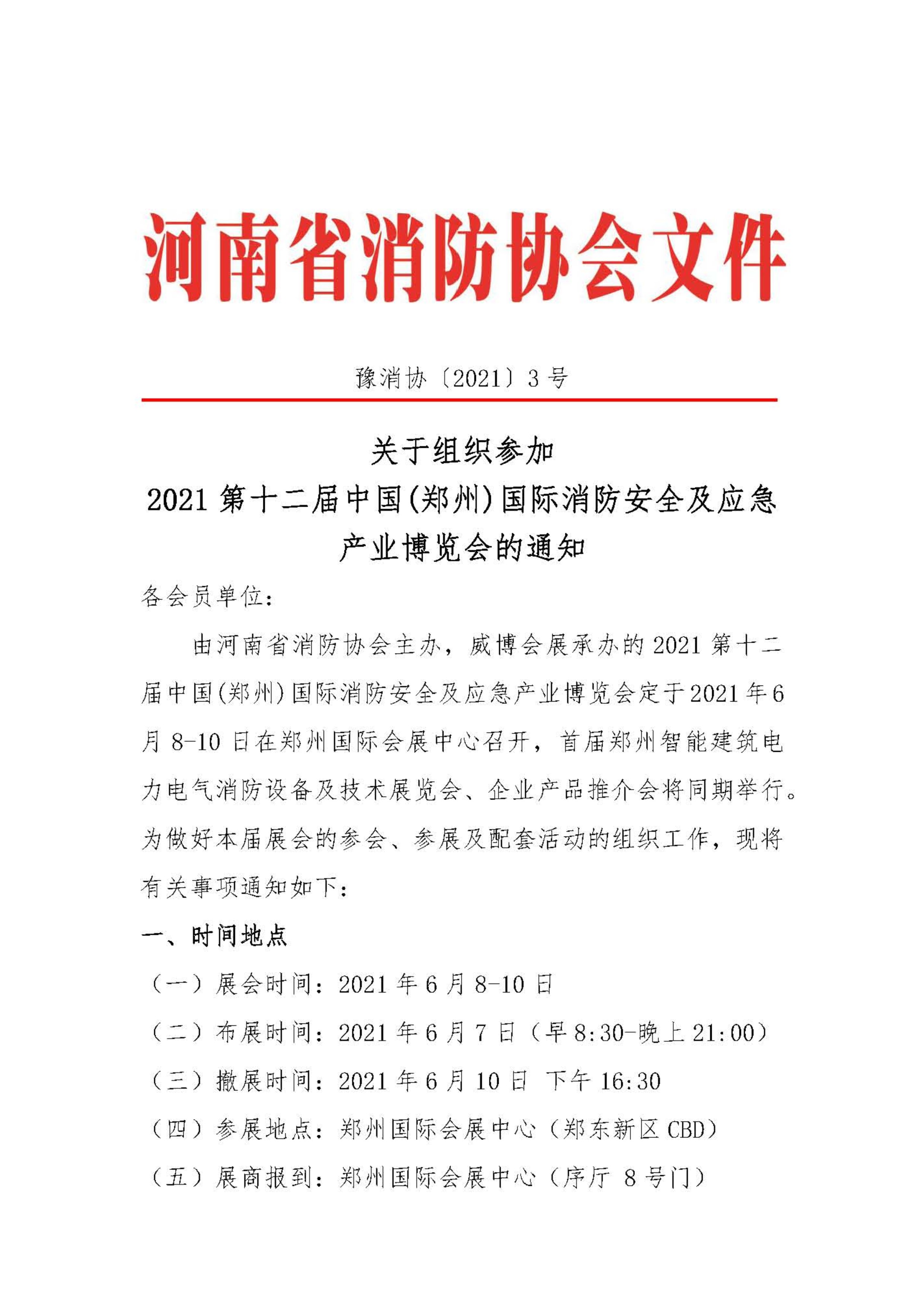 【協(xié)會通知函】關(guān)于邀請參加“2021年第12屆鄭州國際消防展”的通知
