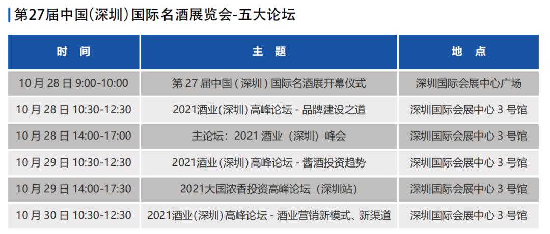 10月28日-30日,由科通國際展覽(廣州)有限公司主辦的“第27屆中國(深圳)國際名酒展覽會”(以下簡稱“名酒展”)將在深圳國際會展中心舉辦,3大展館展示面積高達(dá)60000㎡。