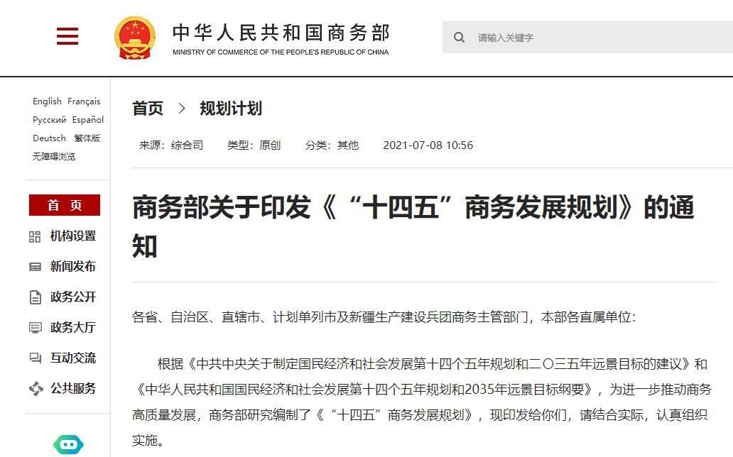 《“十四五”商務(wù)發(fā)展規(guī)劃》明確提出加快數(shù)字技術(shù)與貿(mào)易發(fā)展深度融合,提升貿(mào)易數(shù)字化水平,拓展貿(mào)易發(fā)展新空間,促進(jìn)跨境電商健康持續(xù)創(chuàng)新發(fā)展”等一系列支持舉措,為跨境電商行業(yè)提供重大發(fā)展機(jī)遇。