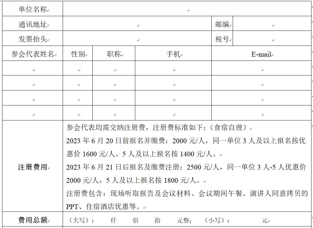 2023年6月21日后報(bào)名及繳費(fèi)注冊(cè):2500元/人,同一單位3人-5人優(yōu)惠價(jià)2000元/人,5人及以上報(bào)名按1800元/人。