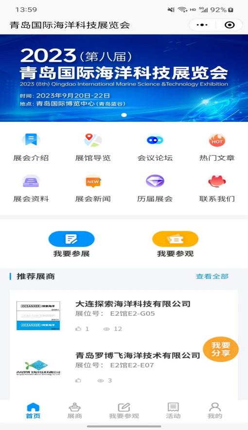 您可以通過展商秀平臺提前預(yù)覽2023(第八屆)青島國際海洋科技展覽會參展商、展品、主題論壇、同期活動等