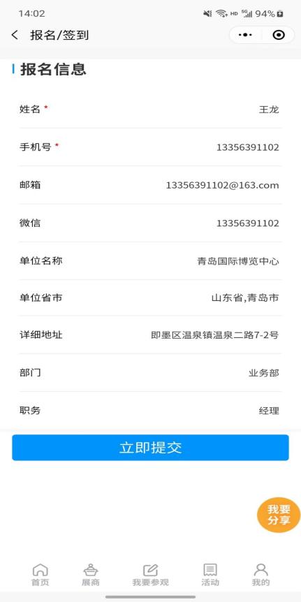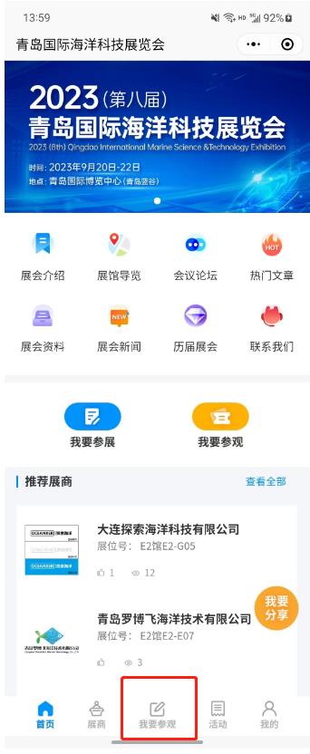 點擊展商秀底邊欄中央的【我要參會】按鈕,直接報名參加青島??普?,避免現(xiàn)場登記注冊麻煩。提前預(yù)登記的觀眾還可以享有免費午餐等