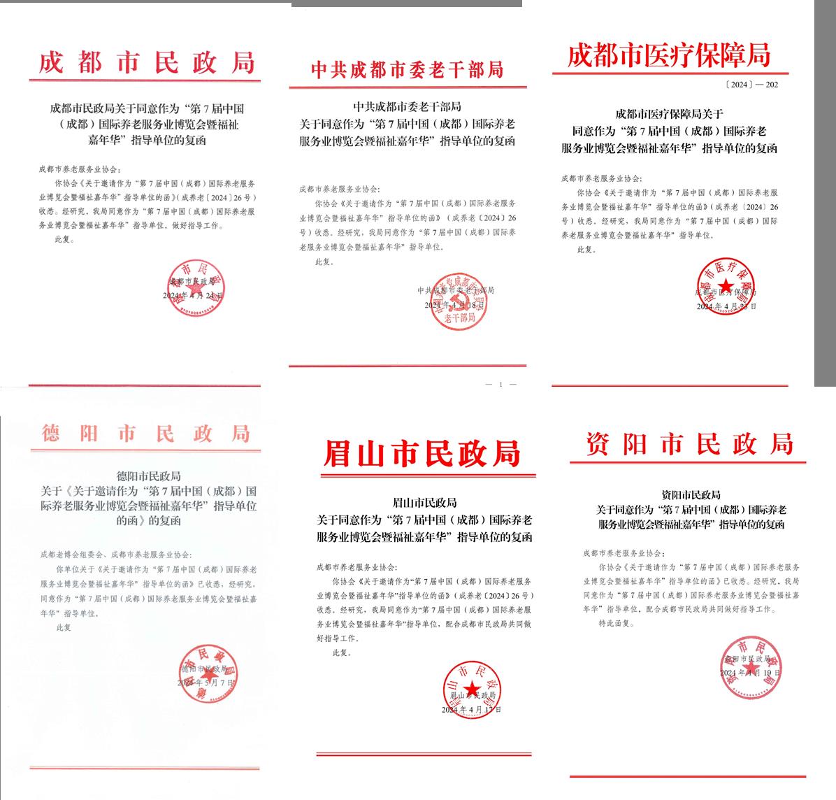 本屆博覽會(huì)得到了政府單位及行業(yè)協(xié)會(huì)的大力支持,擬在中國(guó)社會(huì)福利與養(yǎng)老服務(wù)協(xié)會(huì)、成都市民政局、中共成都市委老干部局、成都市衛(wèi)健委、成都市博覽局、成都市醫(yī)療保障局、成都市殘疾人聯(lián)合會(huì)、德陽(yáng)、眉山、資陽(yáng)民政局等單位的指導(dǎo)下,由成都市養(yǎng)老服務(wù)業(yè)協(xié)會(huì)、四川省一帶一路經(jīng)貿(mào)合作促進(jìn)會(huì)、成都世紀(jì)康博會(huì)展有限公司、全國(guó)老齡辦國(guó)家老齡研究基地(西南交通大學(xué))等單位聯(lián)合主辦。