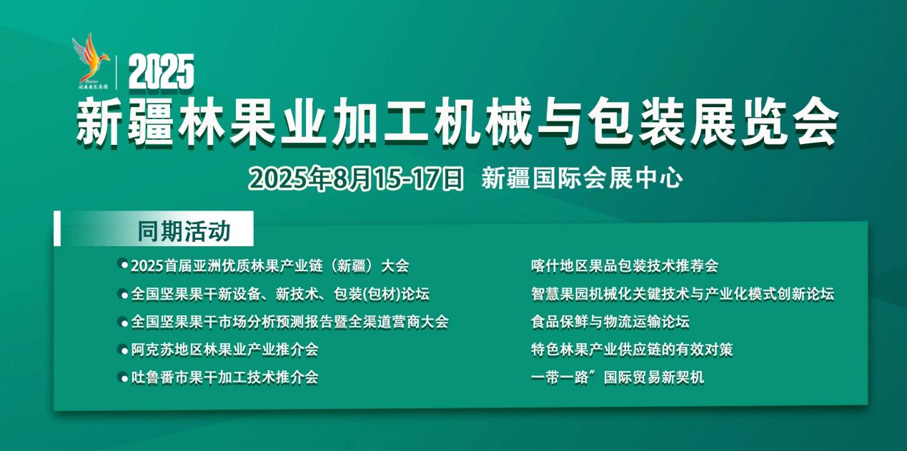 面對政策利好,市場需求釋放的良好局面,2025新疆林果業(yè)加工機械與包裝展覽會迅速響應,緊密結(jié)合國家戰(zhàn)略和規(guī)劃,全力推動展會升級。新疆林果包裝機械展將于 2025 年 8 月 15日至 17 日在新疆國際會展中心隆重舉行。此次展會將以全新的奮進之態(tài),精彩呈現(xiàn)林果加工產(chǎn)業(yè)的蓬勃活力。